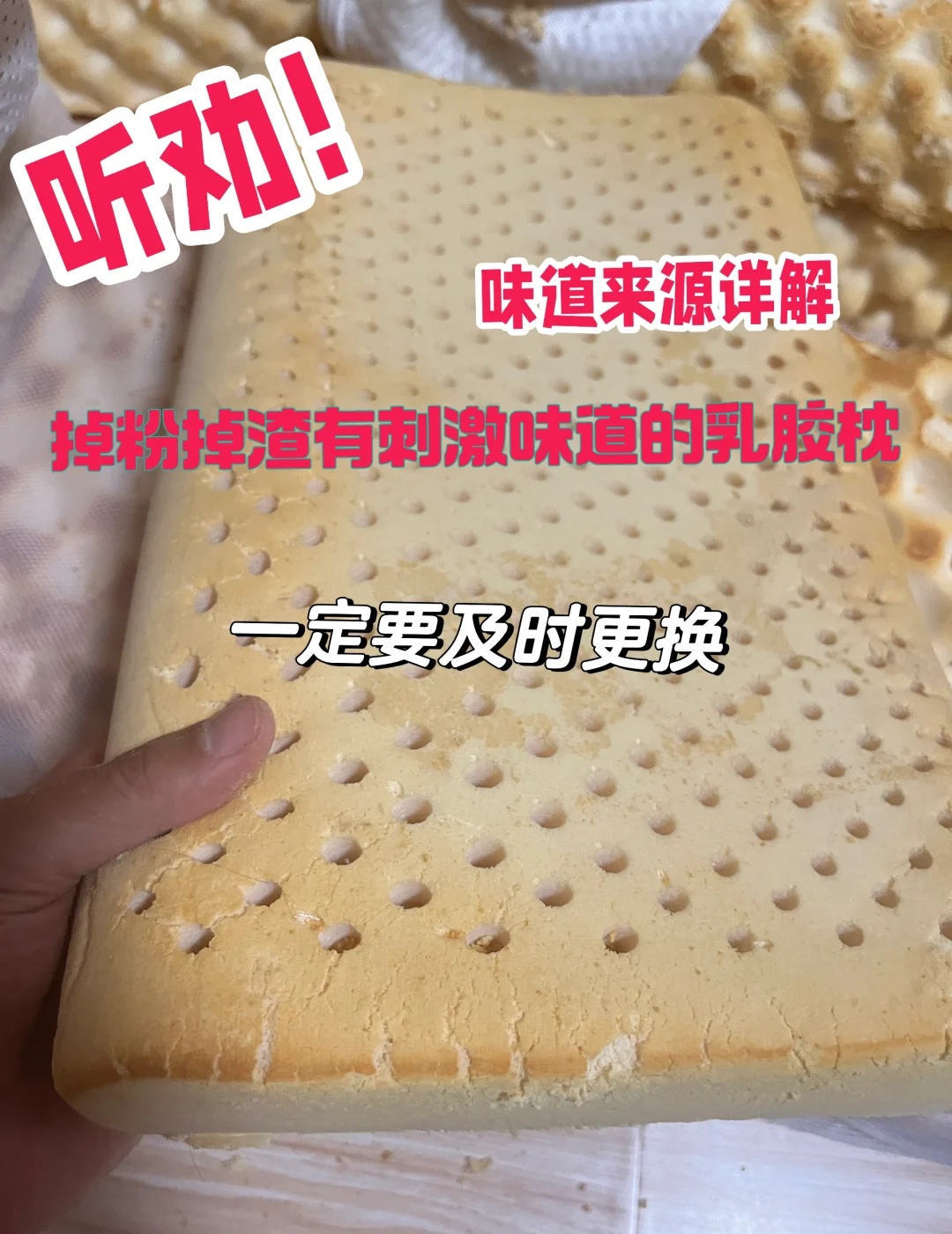 千万不要被骗了,看看你家的乳胶枕用了一段时间是不是已经发黄,甚至掉渣产生粉尘了,这种乳胶枕赶紧扔,